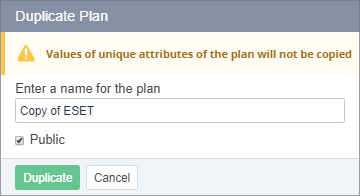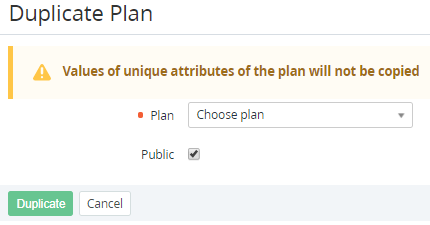 - Optionally, to make a copy of the Plan unavailable for ordering by Customers after its creation, clear the Public checkbox.