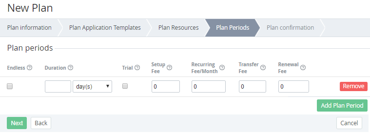 For Plans with the Non-Recurring Subscription billing type, all Plan Period fees are equal to 0 and not available.