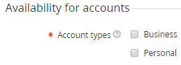 group, select the Account types checkboxes to allow Accounts linked to the corresponding Account Type (see Account Types) order Plans based on this Service Term.