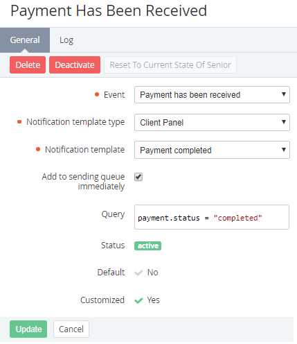 - No if the Event Handler was inherited or created by Reseller Manager (see Reseller's settings inheritance).