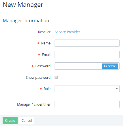 - In the Email field, enter the Manager's email, which is used as a login to signing in to the Operator Control Panel.