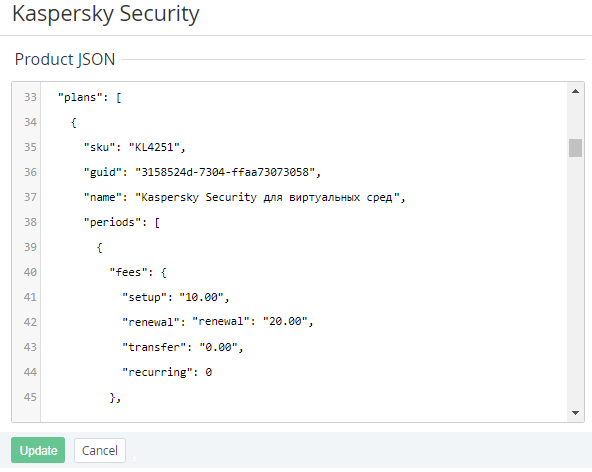 JSON request is renewed each time the Vendor updates or activates/deactivates the product in Vendor Portal. In that case the changes that were made to the JSON request in Operator Control Panel are not saved.