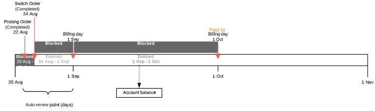 - If there are not enough funds on the Account balance, the Subscription is stopped. To activate the Subscription, a customer need to pay for the Renewal Order.