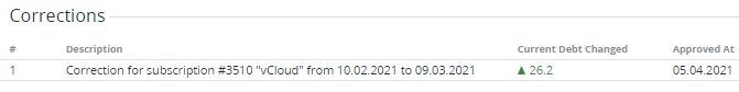 - a down-pointing triangle ▼ and the "-" sign are displayed if a negative Correction was created (the Current Debt was decreased using the Correction).