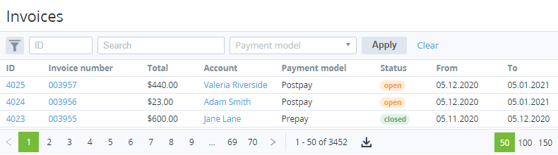 - Invoice number — a number of the Invoice. Number format can be configured in the General system settings (see General system settings).