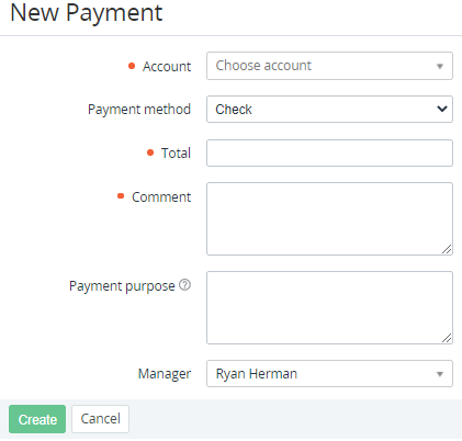- In the Manager list, select the Manager responsible for processing the Payment.