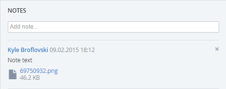 Notes can be added to each section of the Operator Control Panel which contains the Notes bar. Each note can contain a text and attached files.