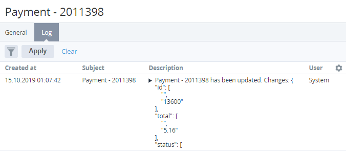 - Click the ID or Number for the required Payment. The Payment details page is displayed.