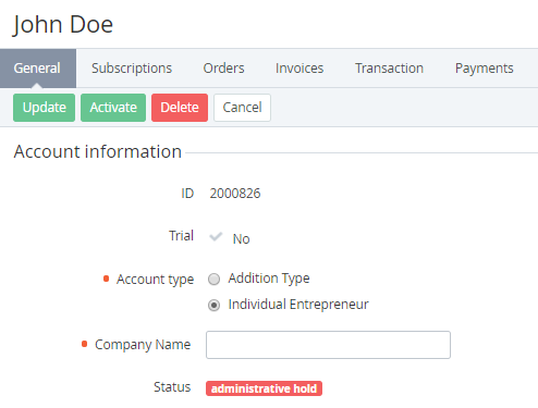 After returning an Account from administrative hold, the Users, which are attached to this Account, get the access to the Customer Control Panel for this Account. Subscriptions with Active and Graced status get these statuses back. Other Subscriptions don't change their statuses.