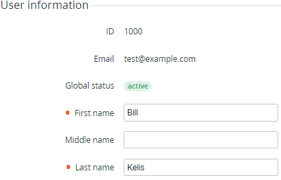 - First name, Middle name, and Last name — full name of the User.