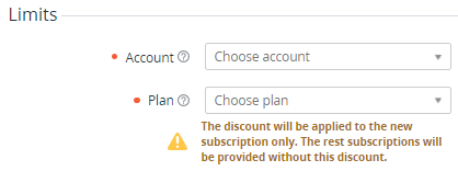 After creating a Discount, it is not possible to change the selected Account and Plan.