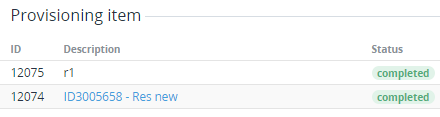 - Provisioning item — the list of Subscriptions and Resources included in the Order: