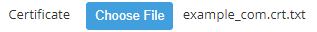 The SSL-certificate filename should only contain the domain name in the lowercase letters. Replace dots with the underscores. For instance, for the example.com domain the SSL-certificate filename is example_com.crt.