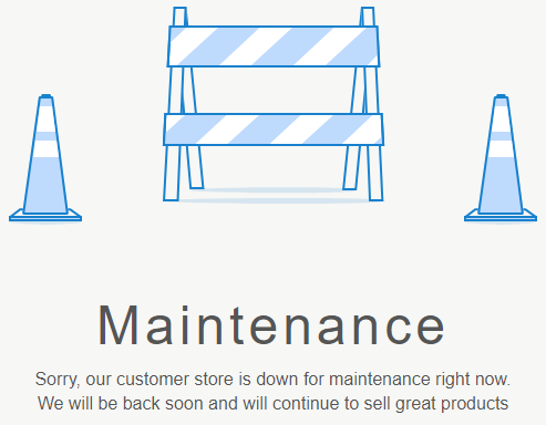 - Main content has only one section containing the image and the message that Customer Store is under maintenance.