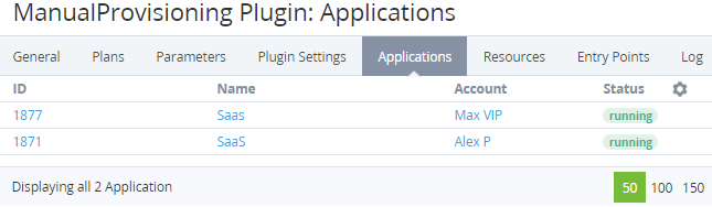 Depending on the Plugin used for the selected Application Template, the list of Application Instances may include additional columns.