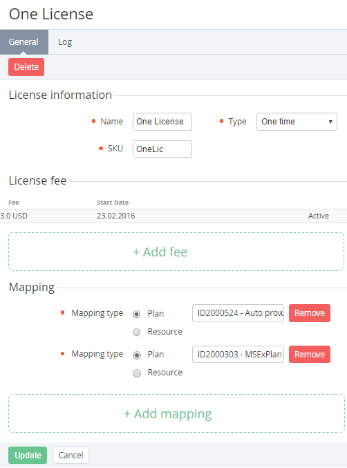 - Resource — the license is connected to the selected Plan Resource (see Plan Resources).