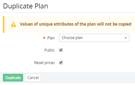 - Optionally, to make the copy of the Plan unavailable for ordering by Customers after its creation, clear the Public checkbox.