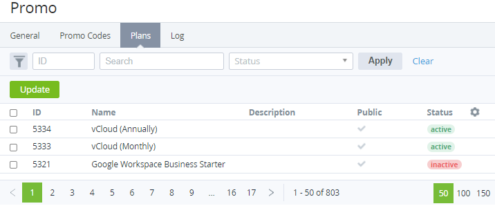 - Public — an attribute indicating whether the Plan is available for ordering in Customer Control Panel.