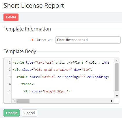 Template Body — a body of the template (for more information see Creating a template of the License reports).