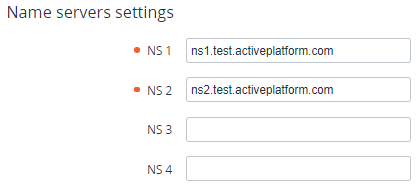NS 1–NS 4 — addresses of the DNS servers (at least two) used to connect to ActivePlatform.