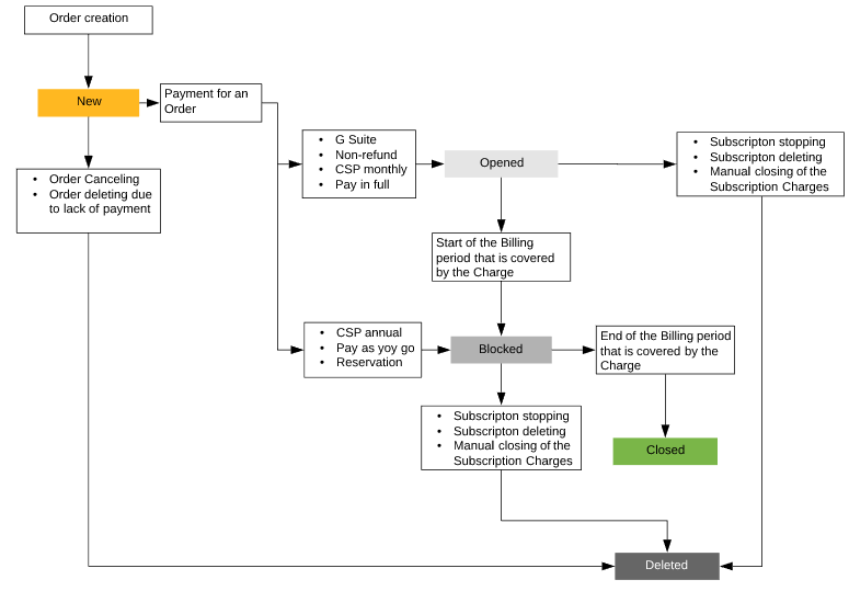 | Subscription stop | Recurring fee | Status | See Splitting of Charges when a Subscription is stopped, Charges for the Subscriptions with different billing types |