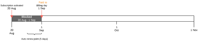 - After that, if the Subscription is not activated till the next Billing day, the remained Charge in the Blocked status is deleted too.