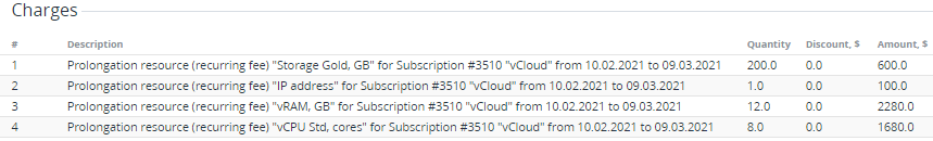 - Discount — amount of the discount applied to the Charge (see Managing Discounts).