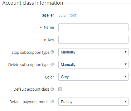 Default account class — when the checkbox is selected, this Account class is automatically assigned to new Accounts registered via the Customer Control Panel.