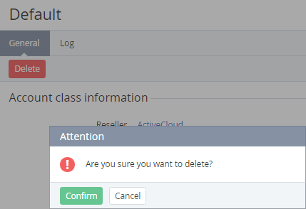 - On the Toolbar of the Account Class's details page, click the Delete button.