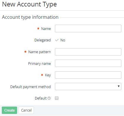 - On the Toolbar, click Create. The New Account Type page is displayed.