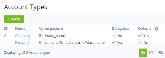 - Name — a name of the Account Type.
