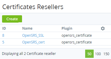 - List of Certificate Resellers with the following columns:
