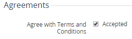 - Agreements — information about the agreements accepted by the Account. The group is displayed if the Reseller activated acceptance of legal agreements for Accounts (see General system settings).