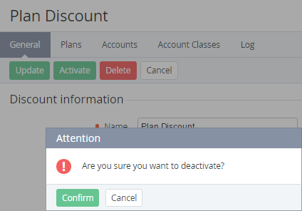 - Click Confirm. The Discount will be deleted.