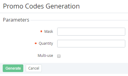 - Click Generate. The list of added promo codes will be displayed on the screen (see Viewing the List of Promo Codes).