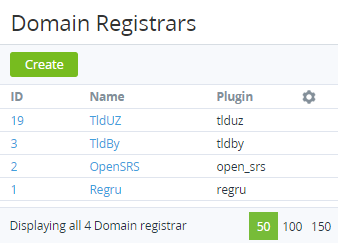 - On the Navigation Bar, go to Domain Registrars (see Navigation). The list of Domain Registrars is displayed.