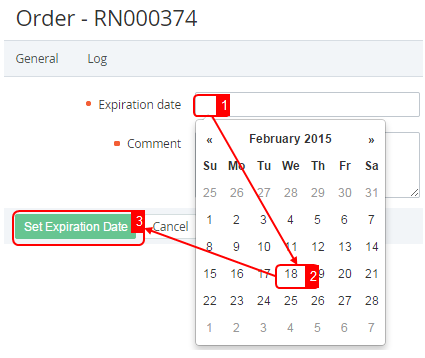 Expiration date — the date by which the order must be paid or activated (the order gets the Completed status). If the Order was not completed before the expiration date, the Order receives the Cancelled status. The Expiration date can be changed only for the Orders with Activation failed and Waiting for payment statuses.