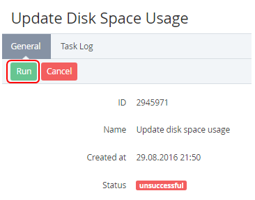 - Click the Run button on the Toolbar. The Task will be stopped. The Task will have the Scheduled (if the Task is in the execution queue) or Running (if the Task isn't in the execution queue) status (see Viewing the List of Tasks).