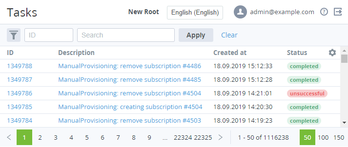 The list of Tasks contains the following columns:- ID — a unique identification number of the task.