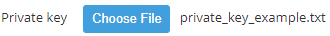 - Click the Choose file button of the Private key element and upload the private key file to access the web server via SSH protocol. The uploaded file name is displayed to the right from the Choose file button.