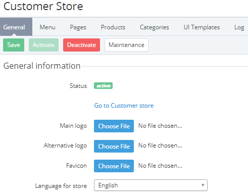 - On the Navigation Bar, go to Storefront (see Navigation). The General tab is displayed with the General information group.