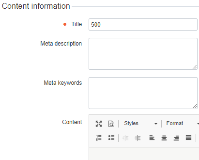 The 500 page cannot be deleted, but Reseller's Employee can completely change its content and meta information (see Editing Page).