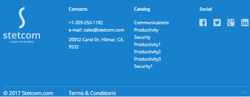 - Social — links to Reseller's accounts in Facebook, Twitter, Google+, LinkedIn (link URLs should be specified).