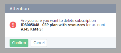 - In the opened confirmation window, click the Confirm button. The Subscription is deleted.