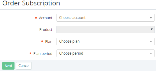 Also, you can use the Account Subscription page to order a Subscription to the selected Account (see Viewing and updating an Account's details).