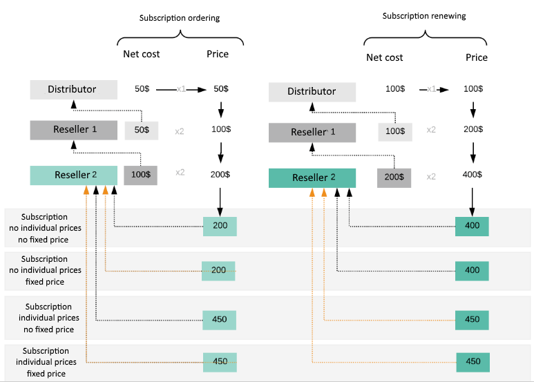 - After the next Billing day since Subscription renewing, for closed customer Charges, Reseller Charges are created at all upstream Reseller levels using the net costs at all Reseller levels effective at the moment of the Renewal Order creation.