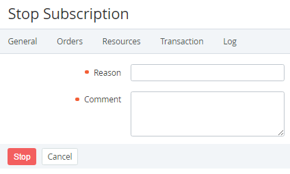 - In the Comment field, enter additional information about stopping the Subscription.