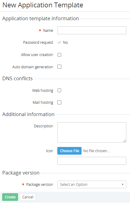 - In the Package version list, select the version of the APS package that will be used for the Application Template.