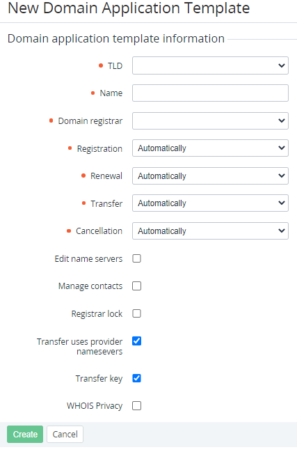 - In the Domain Registrar list, select the previously created Domain Registrar for the selected Top-level domain.