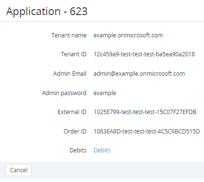 For Subscriptions with the Pay as you go billing type, the Application Instance page includes the Debits link to view the list of consumed resources (see Viewing the List of consumed resources for Subscriptions with the Pay as you go billing type).